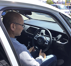 買います。 津市在住Y.Y さん 現在ガソリンモデルの三代目フィット愛用。軽快性と取り回しの良さとエクステリアにあった黄色カラーがとても気に入っています。今回はハイブリッド車の試乗でした。前方視界の良さ、ワイパーが見えないすっきり感、全体的にインテリアがすっきりしているのはとても良い印象です。